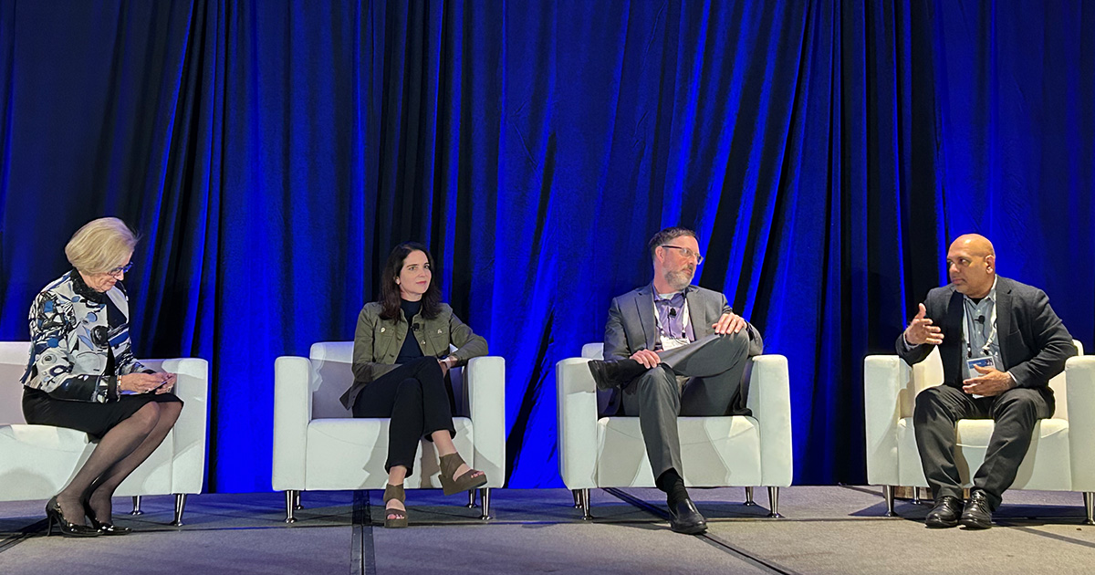 Anne Snowdon of HIMSS, Eve Cunningham of Providence, Corey Lyons of VMware and Tariq Dastagir of Humana share the stage Dec. 15 in San Diego.