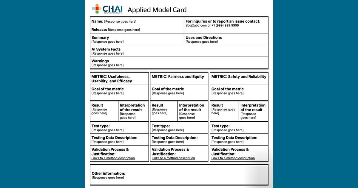 Any HIT company or health system can use CHAI’s model card in any way they want, which the coalition said could help streamline the procurement processes and improve implementation at scale.